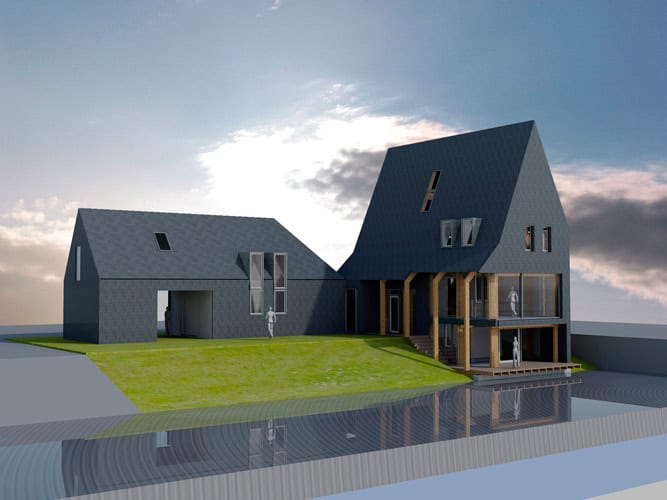 Ik waak ervoor dat de door de opdrachtgever gewenste openheid of geslotenheid van het interieur weerspiegeld wordt in de vormgeving, materiaalkeuze en detaillering van de buitengevels.’