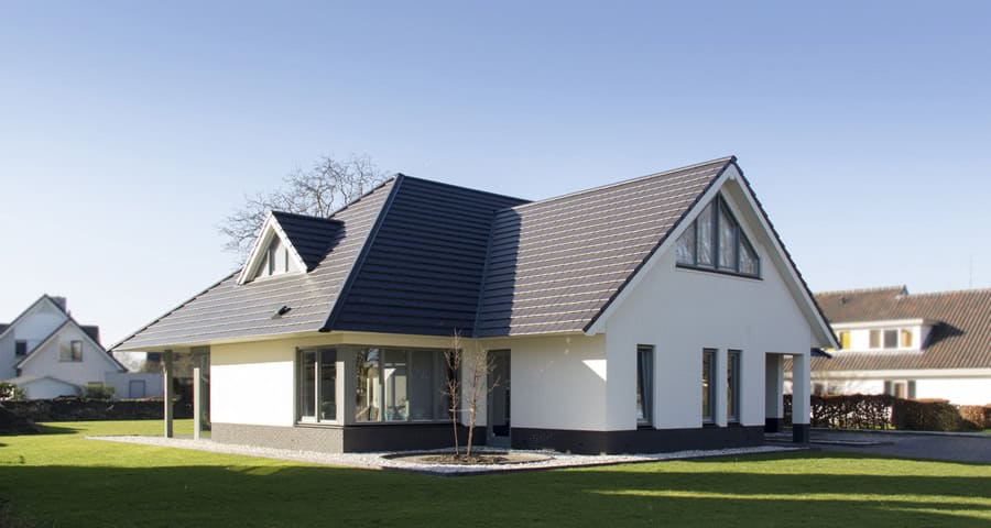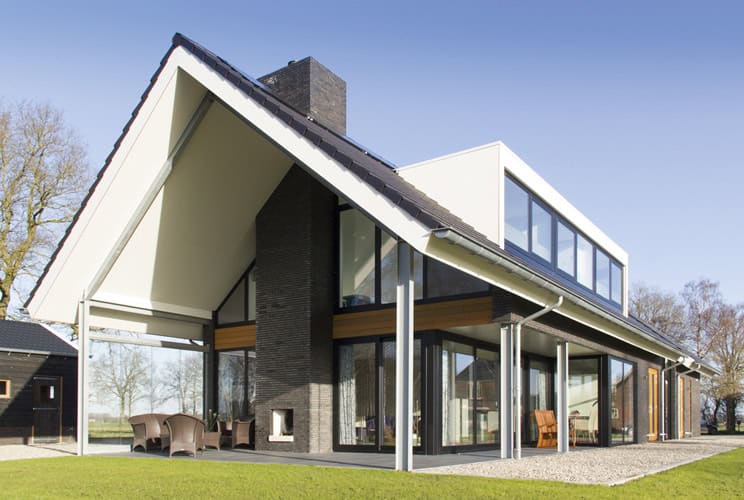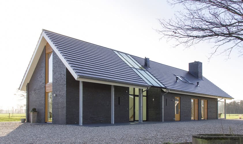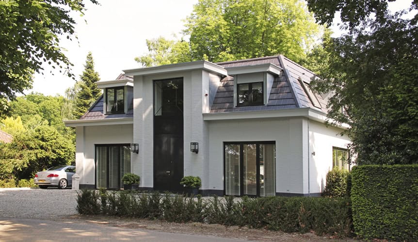 Er wordt in verschillende architectuurstijlen gewerkt. Van moderne schuurwoning tot eigentijdse bungalow of klassieke villa. De schuurwoning in Laren valt op door haar vormgeving en robuust materiaalgebruik. De woning is met zwartbruine baksteen in wild metselverband (stootvoegloos) uitgevoerd. De keramische dakpannen zijn zwart, de buitenkozijnen zijn van aluminium en hout. Het hout van de gevel/luiken is geolied Western Red Cedar. De dakgoten zijn van onbehandeld zink, de pui aluminium blank geanodiseerd.