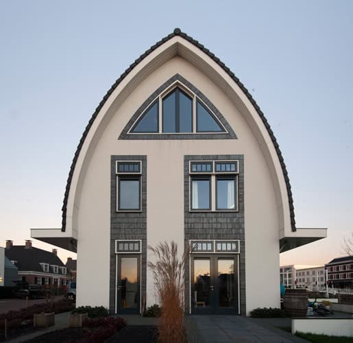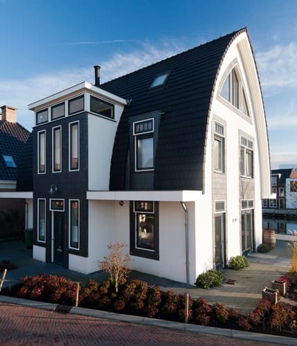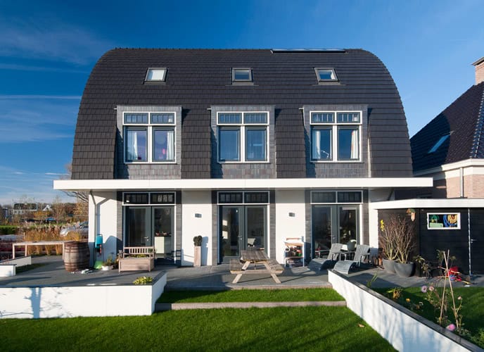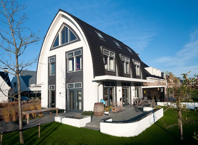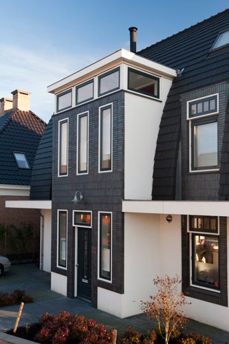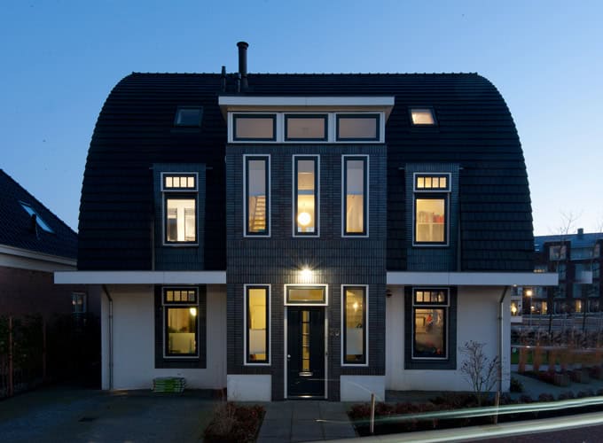 Gevelmateriaal: houtbeton met hoogwaardige isolatie, stucwerk en baksteen.