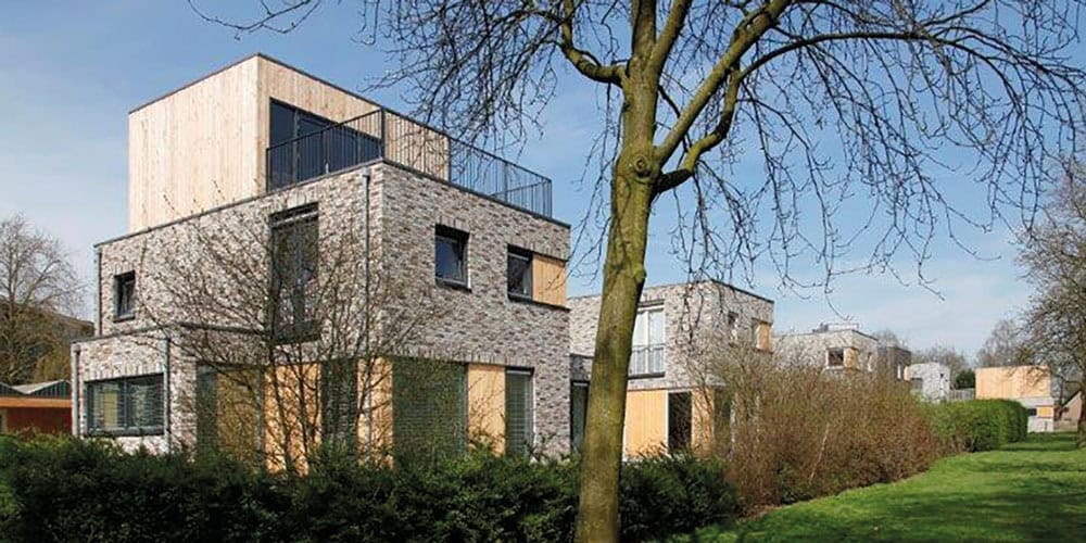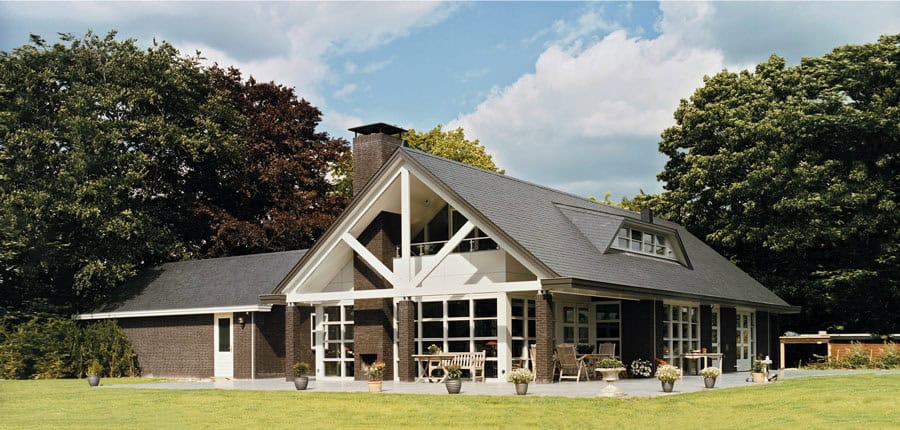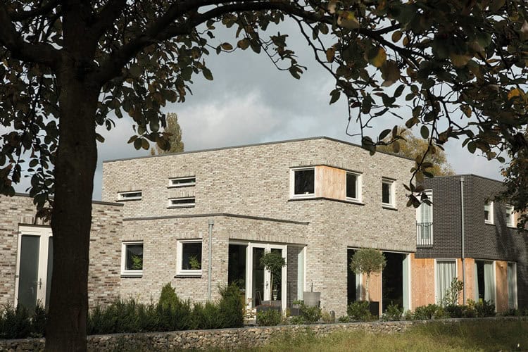 De zes woningen in het plan Moerbosch in Apeldoorn zijn ontwikkeld vanuit één basiswoning. Met verschillende opties is deze basis naar behoefte uit te bouwen op de begane grond met een studeer- of slaapkamer, erker of serre. En aan de basisverdieping kan een extra laag worden toegevoegd.