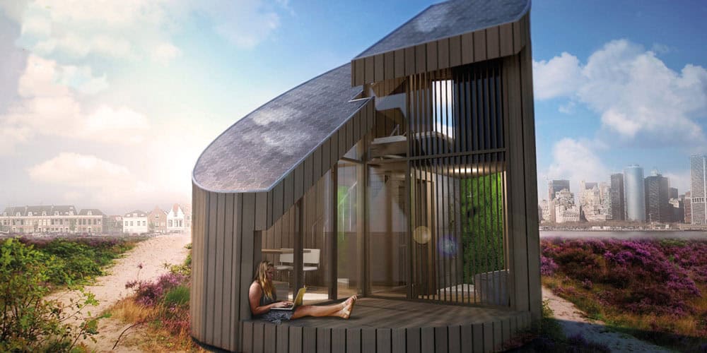 In het ontwerp voor het Tiny House, gemaakt door een ontwerpteam, komen alle aspecten van duurzaamheid en inventiviteit samen. Het Tiny House kan in de meest verregaande variant de nodige energie zelf opwekken, door bijvoorbeeld met de zon mee te draaien. Het zuivert zelf het gebruikte afvalwater door middel van een plantenfilter aan de gevel en heeft dus geen aansluiting nodig op elektriciteitsnet of riolering. De manier van construeren en de keuze van de materialen zorgen er bovendien voor dat het een circulair ontwerp is. Dus alle materialen kunnen worden hergebruikt. En het ziet er nog leuk uit ook.