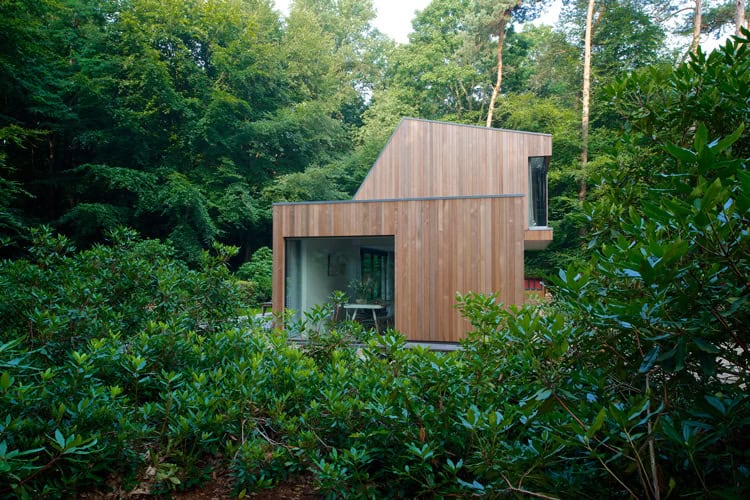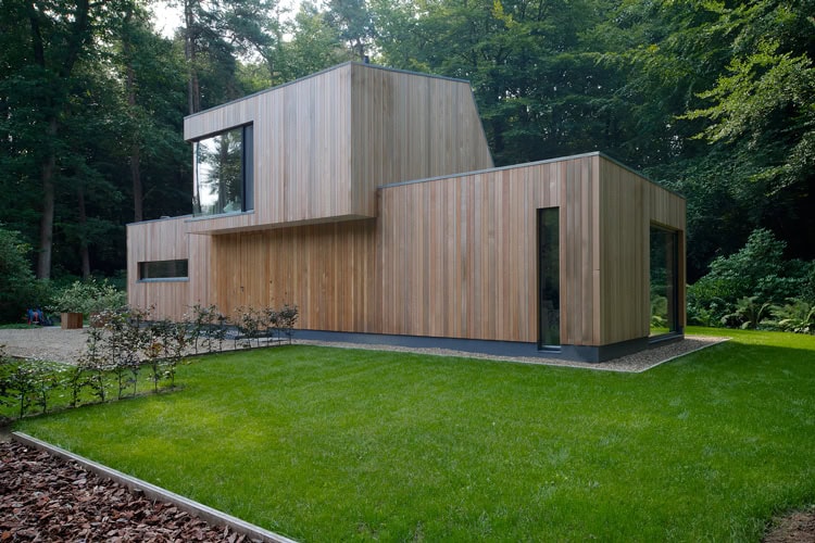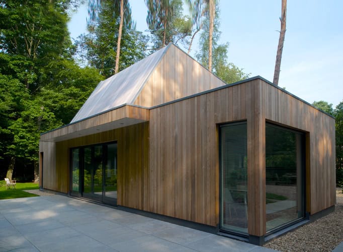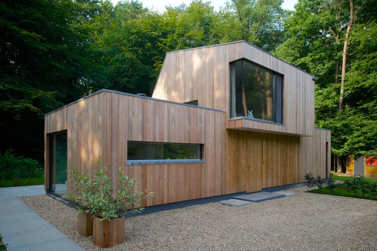 Gevelmateriaal: Western Red Cedar. Constructiemethode: houtskeletbouw.