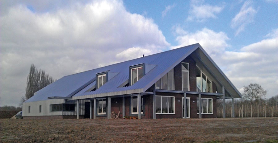 Gevelmateriaal: hybride staal / houtskeletbouw / traditioneel.