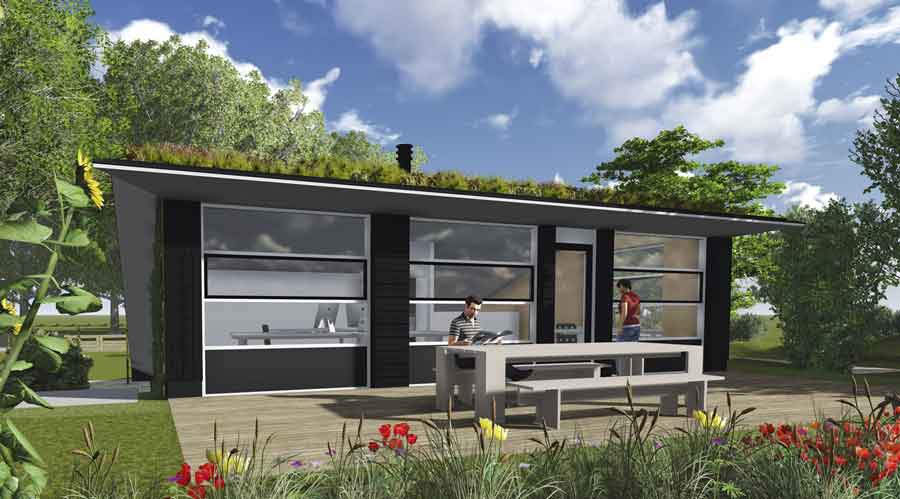 Constructie-methode: houtskeletbouw met straw blocks systems.