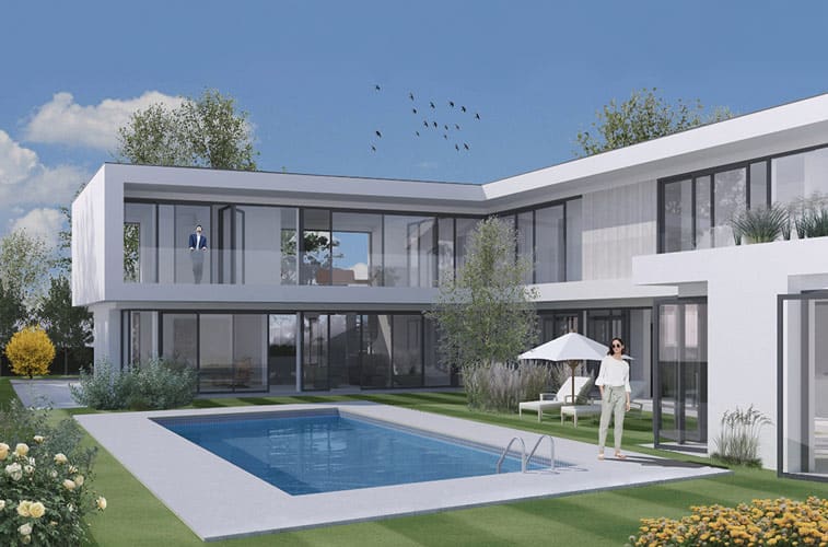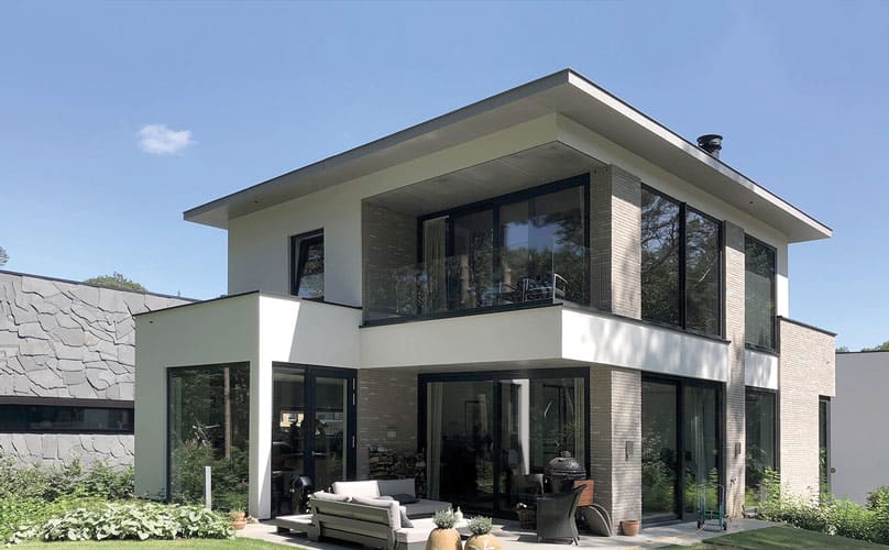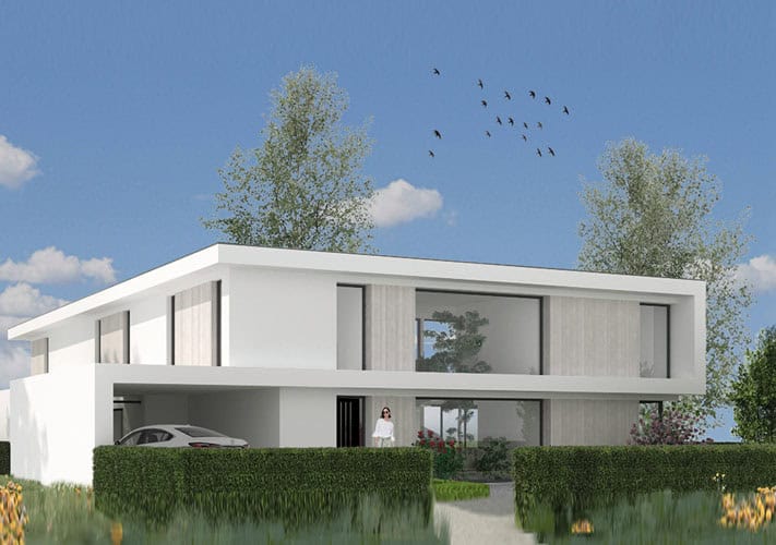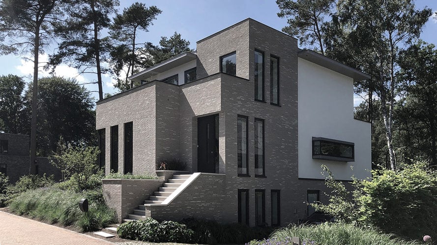 De afgebeelde projecten zijn kenmerkend voor de portfolio. ‘We houden ervan om binnen een strakke vormgeving speels om te gaan met sculpturale volumes, die inspringen en uitkragen. De vrijstaande woning in Bos Uyterlinde heeft platte daken met overstekken en een kubistische vormgeving. De gevels zijn met langwerpige baksteen en wit pleisterwerk uitgevoerd, de kozijnen zijn van aluminium. De vrijstaande villa in Breda (600 m2 / 1800 m3) heeft gevels van wit pleisterwerk, aluminium kozijnen, platte daken en een zwembad.