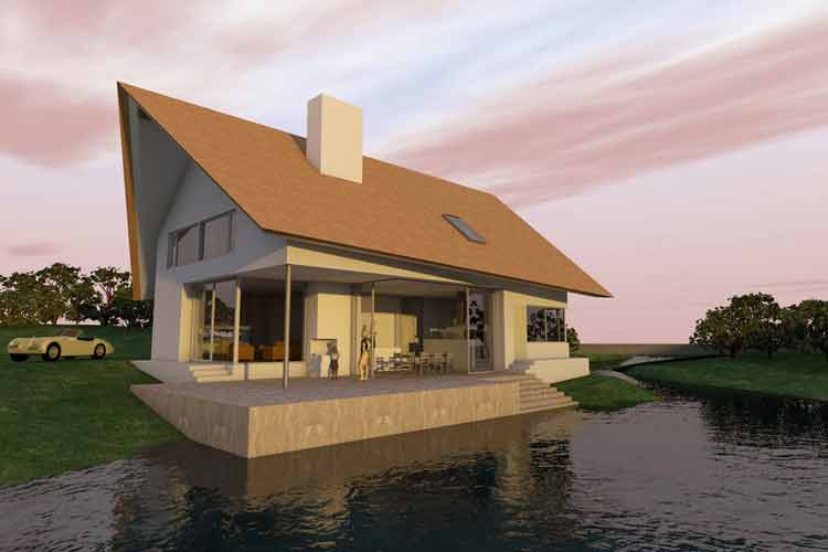 Droomhuisfabriek is een no-nonsense architecten-bureau, opgericht door architect Age Fluitman en bouwtechnoloog Tjibbe Rijpma. Hun gemeenschappelijke passie is om architectuur te realiseren die niet alleen mooi is, maar ook het milieu zo min mogelijk belast. Rijpma: ‘Het allermooiste is dat een duurzaam, goed geïsoleerd huis uiteindelijk ook goedkoper is dan een traditionele woning.’