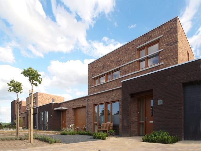 Het afgebeelde werk valt op door de diversiteit in sfeer en uitstraling. De starterswoningen in Langbroek en de