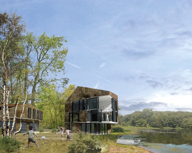 Finbarr McComb Architect laat zien dat voor een goede prijs bijzondere architectuur gerealiseerd kan worden. Architect Finbarr McComb: ‘De mogelijkheid om op Park 16Hoven zo dicht bij Rotterdam vrij en landelijk te bouwen is een uitgelezen kans om een eigentijdse variant van een landhuis voor de moderne stedeling te ontwikkelen.’