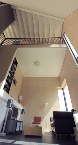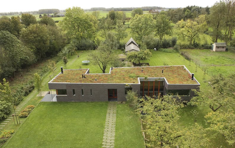Architect Frank Marcus studeerde (cum laude) af aan de Academie van Architectuur en Stedenbouw en heeft (voor een beperkt budget) een aantal bijzondere biobased gebouwen gerealiseerd. Klimaat, ecologie, energie, sfeer en de wensen van zijn opdrachtgevers stonden daarbij centraal. Het bioklimatische (T)huis is als een hedendaagse, bio-ecologische vorm van wonen ontworpen. Het houtskeletbouwcasco is omgeven door een bakstenen schil die zich als een slakkenhuis om het volume vouwt. Het met planten en kruiden begroeide aflopende dak heeft een grote zongerichtheid en dus een hoog rendement voor de PV-installatie en zonneboiler.