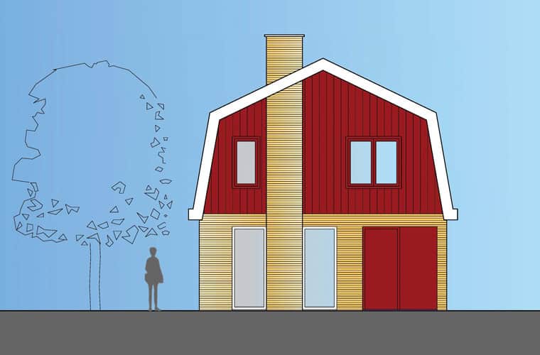 Voor een kavel in Almere heeft Janneke een huis met mooie verhoudingen en een puntdak ontworpen. Het raam in de hal zorgt voor een prachtige lichtval.