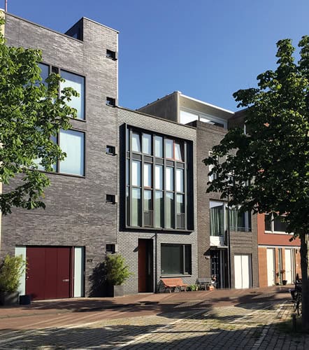 Op IJburg (Amsterdam) is een tussenwoning gerealiseerd die staat ingeklemd tussen andere huizen. De woning kan een stadsvilla worden genoemd, die zich qua vormgeving onderscheidt door de individuele architectuur.