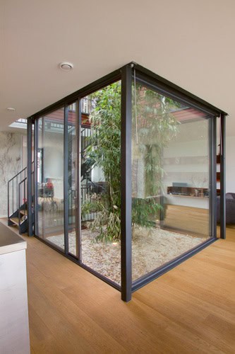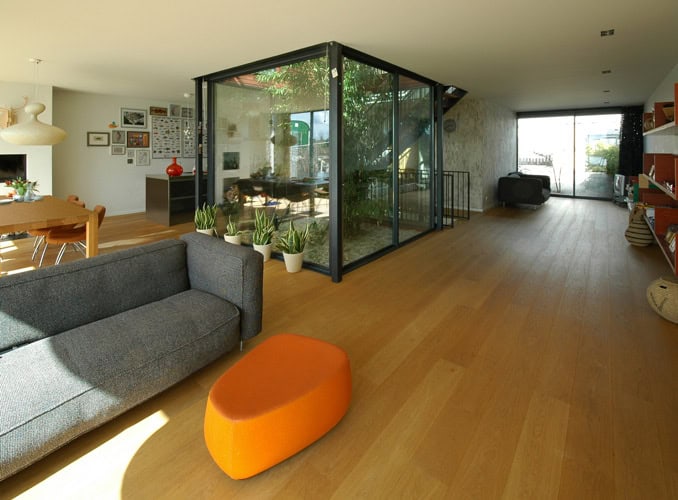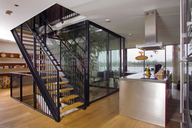 Een mooi voorbeeld van zo’n samenwerking is de villa van familie De Waard-Mensink op IJburg. Een ruime lichte woning direct gelegen aan het water. Het bijzondere karakter van deze villa wordt mede gevormd door een transparante patio in het hart van de woning waaromheen de belangrijkste ruimtes zijn georiënteerd.