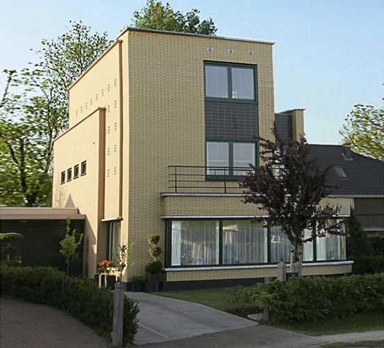 Tuinmuren, dakoverstekken en licht metselwerk bepalen de vormgeving van de villa in het Lyceumkwartier.