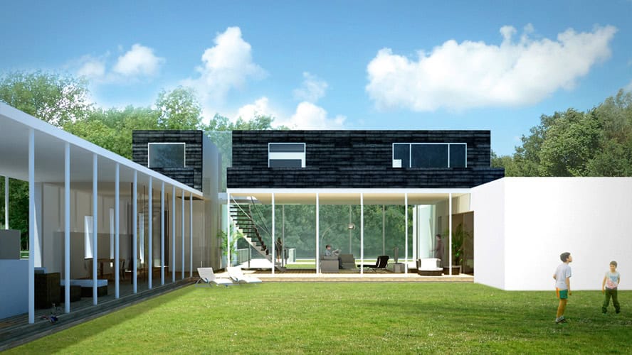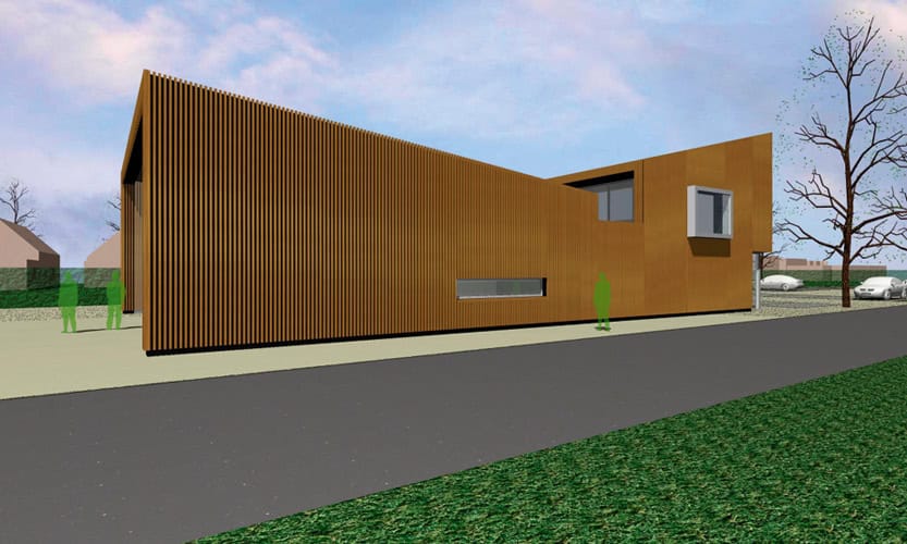 Van der Sanden: ‘De omgeving is belangrijk. Een gebouw staat nooit op zichzelf maar gaat een relatie aan met de plek. In mijn architectuur pas ik zichtlijnen toe om het gebouw te richten naar de omgeving waardoor specifieke plekken in de buitenruimte aansluiten op specifieke plekken in het interieur.