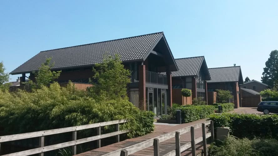Gevelmateriaal: metselwerk, keramische vlakke pan.
