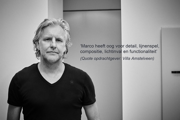 De ontwerpen van Marco en zijn team zijn eigentijds én eigenzinnig. Marco: ‘We zoeken altijd naar een hoofdvorm met sculpturale kwaliteiten en schenken veel aandacht aan het componeren van een spannende, maar harmonieuze gevel. Een zorgvuldige keuze voor materialen en strakke detaillering zorgt voor de juiste uitstraling. Verrassende zichtlijnen, ruimtelijke afwisseling, lichttoetreding en een goede relatie tussen binnen en buiten maken het geheel compleet.