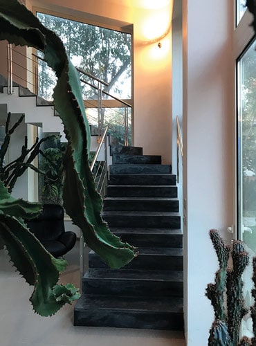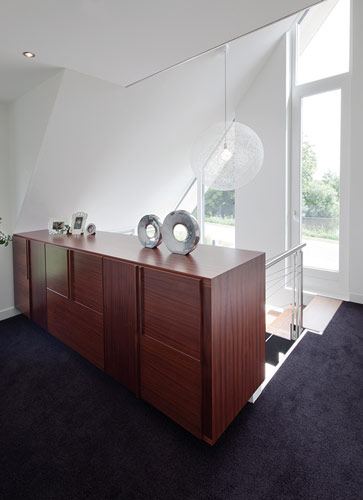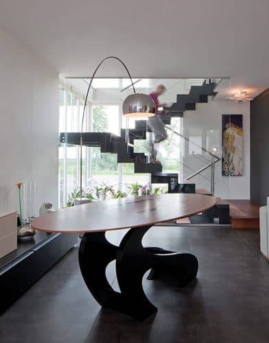 ‘Ik ben allroundarchitect. Bij architectuur, interieurontwerp en inrichting gebruik ik één taal, omdat al deze disciplines deel uitmaken van hetzelfde verhaal. Dat is ook te zien aan de meubels die door mij vaak op maat worden ontworpen. Ik zoek altijd naar een opvallend element dat de kern van een project vormt en functioneert als een sculptuur in het huis, zoals een bijzondere trap met een theatraal effect.’ De architectuur van Maria Elena is hedendaags, soms eclectisch maar verder moeilijk te categoriseren binnen een gangbare stijl. Elk project is anders, omdat het wordt ontwikkeld aan de hand van de eisen en woonwensen van de opdrachtgever. Maria Elena: ‘Zonder deze input kan ik de ruimtelijk vertaling van hun wensen en passies niet maken.’