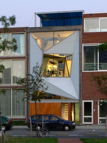 Het compacte Body House (6 bij 13 m met vijf verdiepingen) is een bijzonder ruimtelijke stadswoning op Katendrecht. De sociale patronen rondom het koken en eten met vrienden en familie moesten in het hart van het huis een plek krijgen. Dat is ‘de body’ geworden die verschillende, gestapelde werelden verbindt: