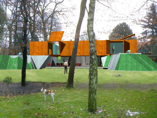 Villa XXX is ontworpen vanuit de vraag om vanaf de weg ‘een onzichtbare villa’ te realiseren. We hebben het gras opgetild en de villa eronder geschoven. Het resultaat lijkt uit een James Bond-film te komen.
