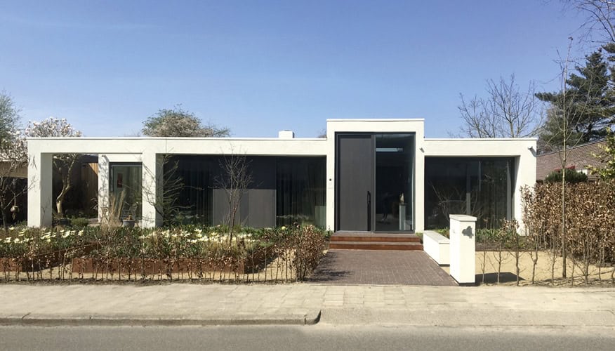 Mark Mutsaers: ‘We leveren een totaalpakket waarbij naar een wisselwerking tussen architectuur, interieurarchitectuur en de vormgeving van buitenruimten wordt gezocht. In elk van deze ontwerpdisciplines hebben we de kennis in huis om een opdrachtgever van a tot z te adviseren. In een vroeg stadium van het ontwerpproces wordt al nagedacht over de inrichting en verlichting van een woning zodat een plattegrond optimaal is afgestemd op de praktijk. Keukens en badkamers worden mee-ontworpen zodat kleur en materiaalgebruik terugkomt in het gehele plan. Onze ruime ervaring met particuliere opdrachtgevers heeft ons inzicht gegeven in hoe verschillende doelgroepen wonen. Gezinnen met jonge kinderen leven anders dan een echtpaar op leeftijd. Wij anticiperen hierop in onze ontwerpen en plattegrondindelingen. In samenwerking met een tuinarchitect worden ook vaak de tuin en overige buitenruimten ontworpen. Zichtlijnen, verlichting en verblijfplekken buiten worden op die manier een verlengstuk van de woning.’