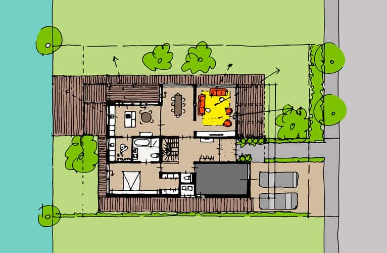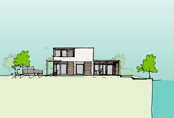 Met dit soort vragen proberen wij ons in te leven in de belevingswereld van de toekomstige bewoners. Een onderlinge klik met de opdrachtgever(s) vinden wij daarbij heel belangrijk voor het behalen van het beste resultaat. We gaan al schetsend en in samenspraak met u op zoek naar de ultieme woning die bij u past.