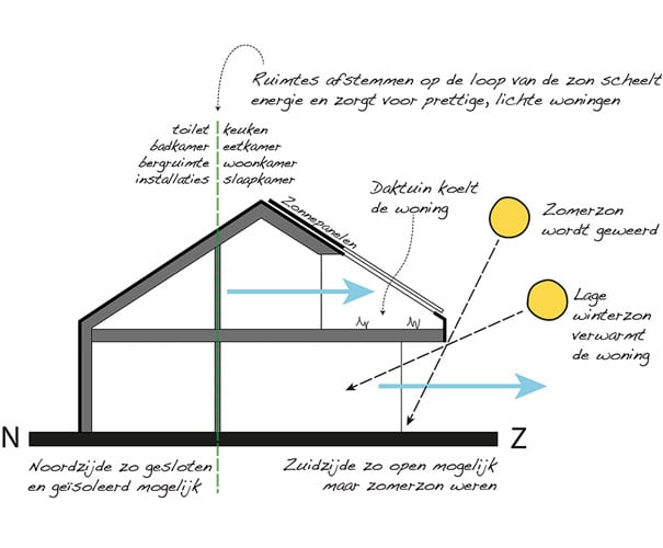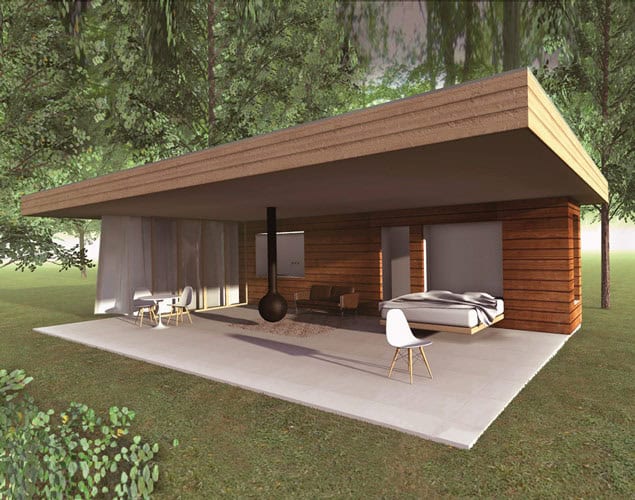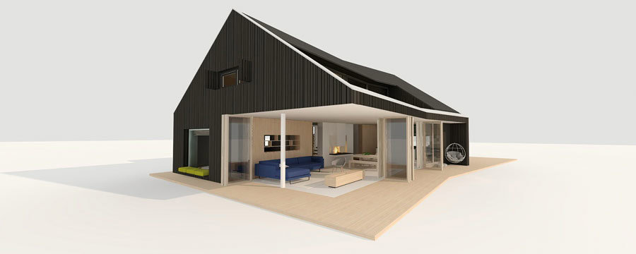 Tjalling: ‘In 2011 heb ik het ‘buitenhuis’ ontworpen als een verbeelding van mijn visie op wonen: dichter bij de natuur, gebruikmakend van de natuurlijke elementen, met veel contact met buiten, duurzaam materiaalgebruik en energieneutraal.’