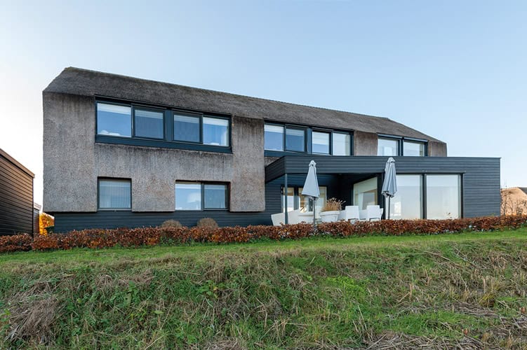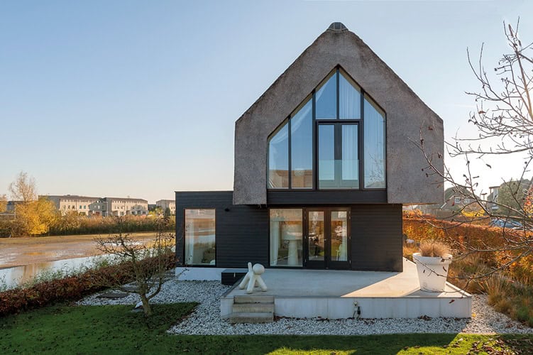Bij woningen die door architect Tjeerd Timmermans zijn gerealiseerd werd ook het interieur ontworpen, waardoor er een eenheid in het totaalbeeld ontstaat. Timmermans realiseert architectuur waar ruimtelijke kwaliteiten optimaal worden benut. In de woning met de rieten kap zijn verschillende karakteristieken van een landhuis op eigentijdse wijze teruggebracht, passend binnen de smalle kavel en in aansluiting op de woonbehoefte van de opdrachtgever. Hierdoor ontstaat een architectuur waarbij de herinnering aan het oorspronkelijke landhuis wordt beleefd. Het huis is gesloten aan de straatkant en open naar de waterpartijen van de wijk de Riethorst in Arnhem.