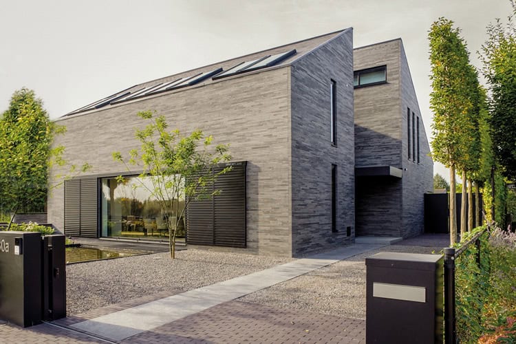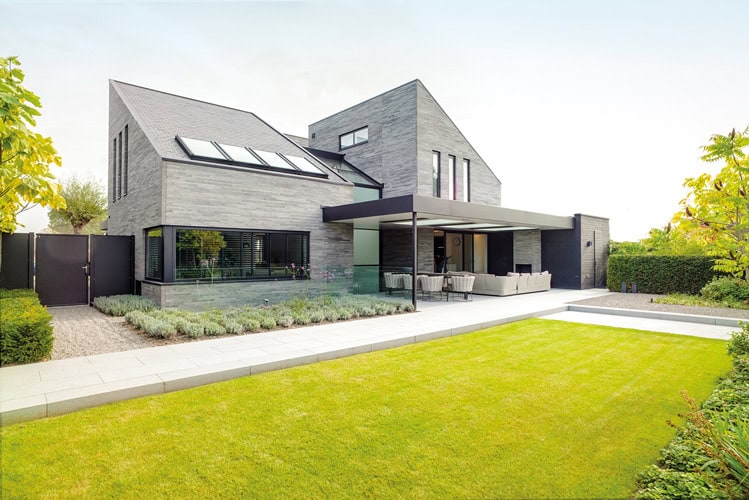 Materialen: betonsteen en natuurleien. Modern, turnkey.