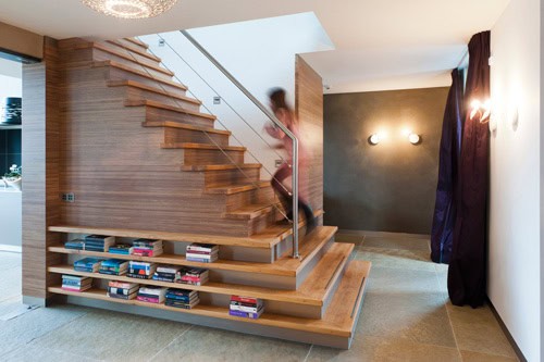 Het interieur van deze boerderijvilla is ontworpen in nauwe samenwerking met de architect. Zadelaar: ‘Mijn ideeën over een aantal essentiële punten in zijn ontwerp zijn verwerkt, dit levert een veel betere ruimtelijkheid op. Zo is de trap nu een ‘meubel’ geworden waarin een boekenkast, wc en keldertoegang zijn verwerkt. De aangelegen ruimten worden zo verbonden zonder dat het hokkig wordt, een sieraad in het huis. Domotica, energiebeheer en beveiliging zijn in het hele huis geïntegreerd. Door de juiste bouwbegeleiding ontstaat een perfect uitgevoerd resultaat waarbij technische en esthetische componenten één worden.