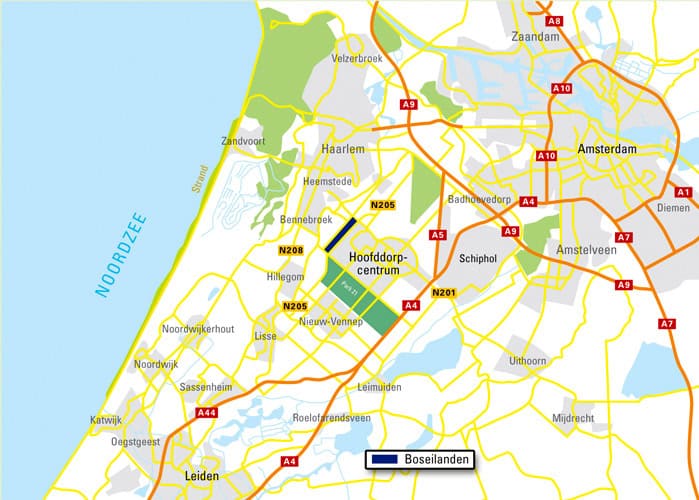 – Wijds wonen betekent vaak inleveren op bereikbaarheid en reistijden. In het geval van Boseilanden hoeft u zich hier geen zorgen over te maken. Binnen 20 minuten bent u op Schiphol Plaza, binnen 15 minuten in Haarlem en binnen 10 minuten zit u op de A4 naar Amsterdam of Den Haag.