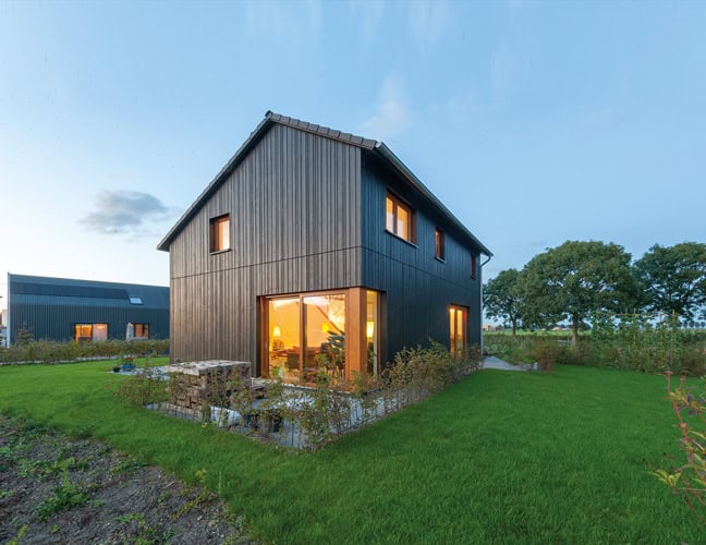 In onze fabriek in Neuenkirchen wordt onder optimale, geconditioneerde omstandigheden geproduceerd. De computergestuurde werkvoorbereiding waarborgt een coherent, gecontroleerd en voor de opdrachtgever zorgeloos bouwproces met een zeer korte bouwtijd. In Nederland hebben we inmiddels tientallen woningen gebouwd. Wij denken en werken vanuit de natuur en passen alleen gezonde, emissievrije en hernieuwbare grondstoffen en bouwmaterialen toe.