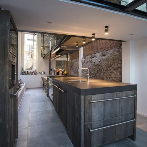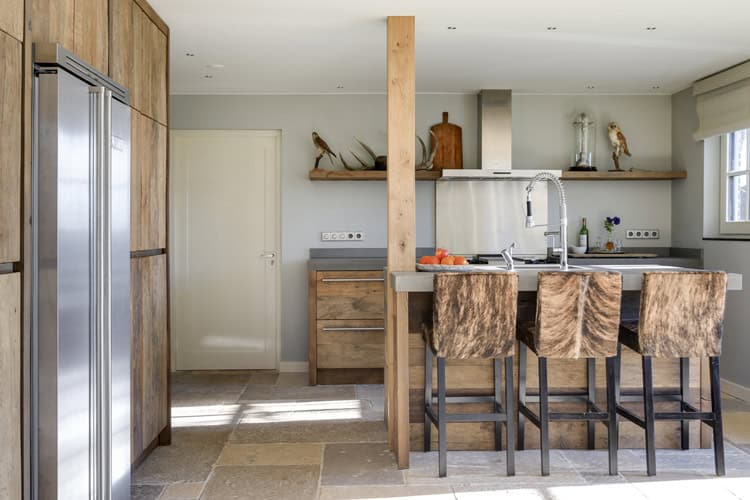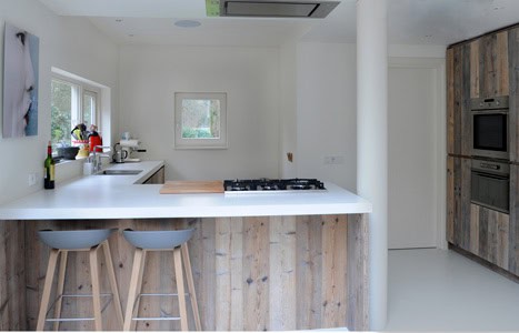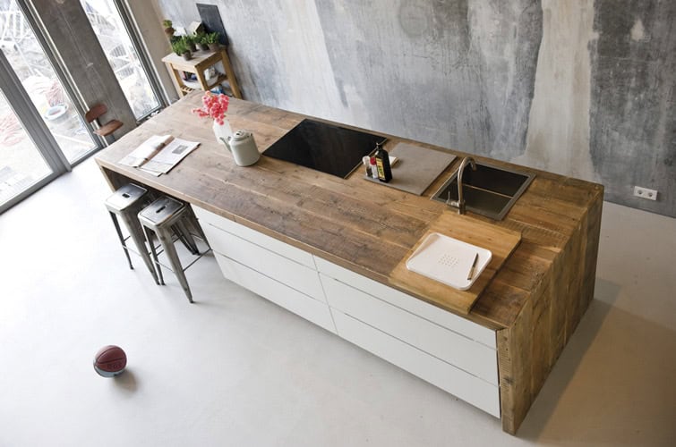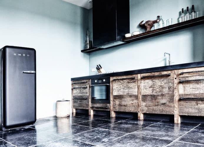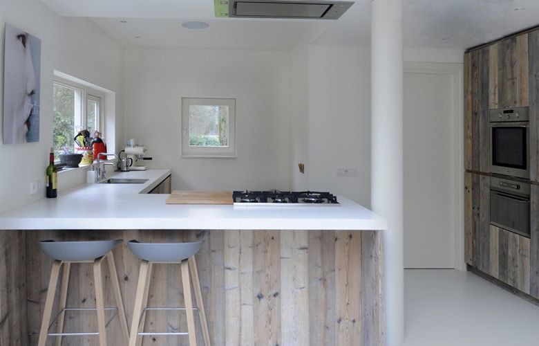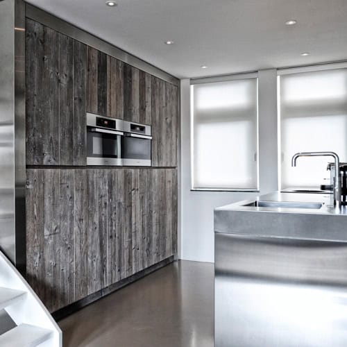 “Al ondernemend en lerend zijn we stapje voor stapje gekomen tot waar we nu staan als bedrijf. We hebben de markt goed onderzocht en zeker ook goed geluisterd naar de geluiden uit diezelfde markt. Al snel kwamen we tot de conclusie dat als we onderscheidend en vooruitstrevend wilden zijn, we op zoek moesten naar speciaal kwaliteitshout.” Die zoektocht leidde onder meer naar Wit-Rusland, Roemenië, Kroatië, Oostenrijk, Canada en de Verenigde Staten. Restyle XL heeft in de loop der jaren een netwerk opgebouwd waardoor gebruikt kwaliteitshout uit onder meer de genoemde landen een weg vindt naar de werkplaats in Woerden. “We werken onder meer met gedroogd en oud eikenhout, barnwood, grenen, hardhout, sloophout en oude wagondelen. Het hout is door weer en wind getekend. Kent een lange historie en leent zich perfect voor onderscheidende keukens of meubels met karakter.”